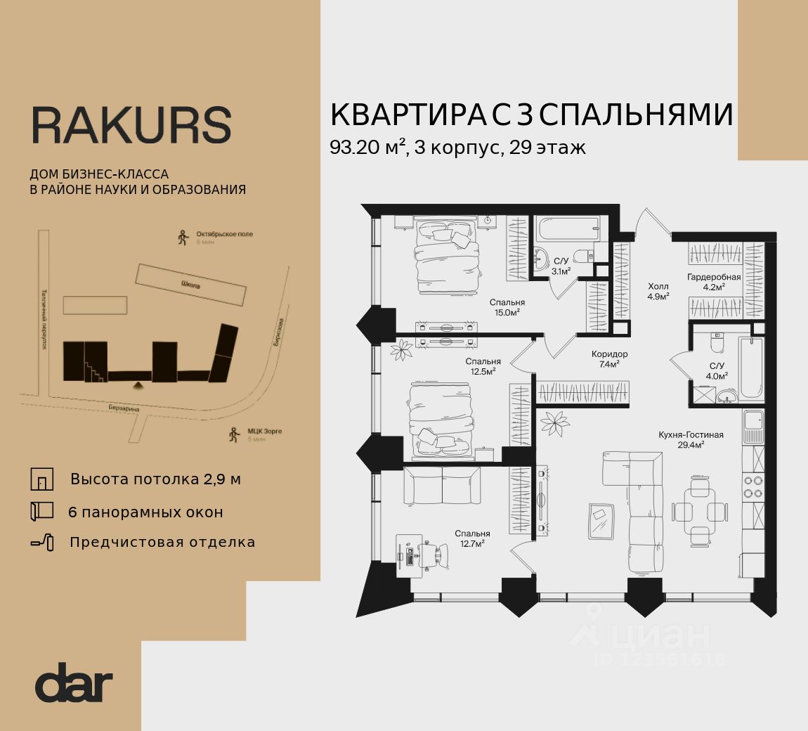 Продаётся 3-комнатная квартира 93.20 м² в жилом комплексе Ракурс. Квартиру отличают панорамное остекление, улучшенная шумо и воздухоизоляция. Дом сдаётся в 1 квартале 2028 года, продажи проходят через эскроусчета. Подземный паркинг, коворкинг, закрытая благоустроенная территория с фонтаном и артобъектами. Гибкие условия покупки.