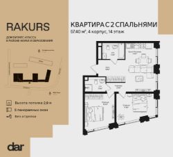 Продаётся 2-комнатная квартира 57.40 м² в жилом комплексе Ракурс. Квартиру отличают панорамное остекление, улучшенная шумо и воздухоизоляция. Дом сдаётся в 1 квартале 2028 года, продажи проходят через эскроусчета. Подземный паркинг, коворкинг, закрытая благоустроенная территория с фонтаном и артобъектами. Гибкие условия покупки.
