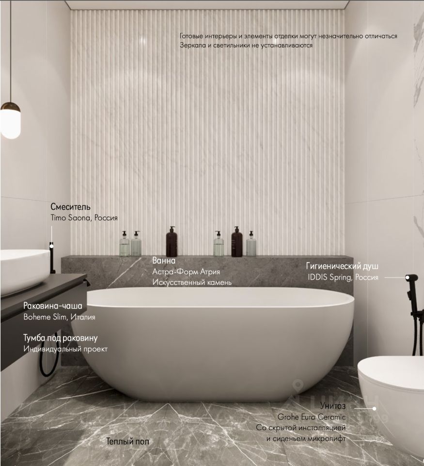 • Сантехника: унитаз, душ/ванна, смесители, раковины