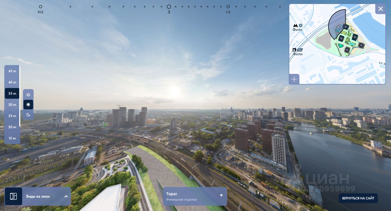 - топовые видовые характеристики, панорамный вид на реку, парк Фили