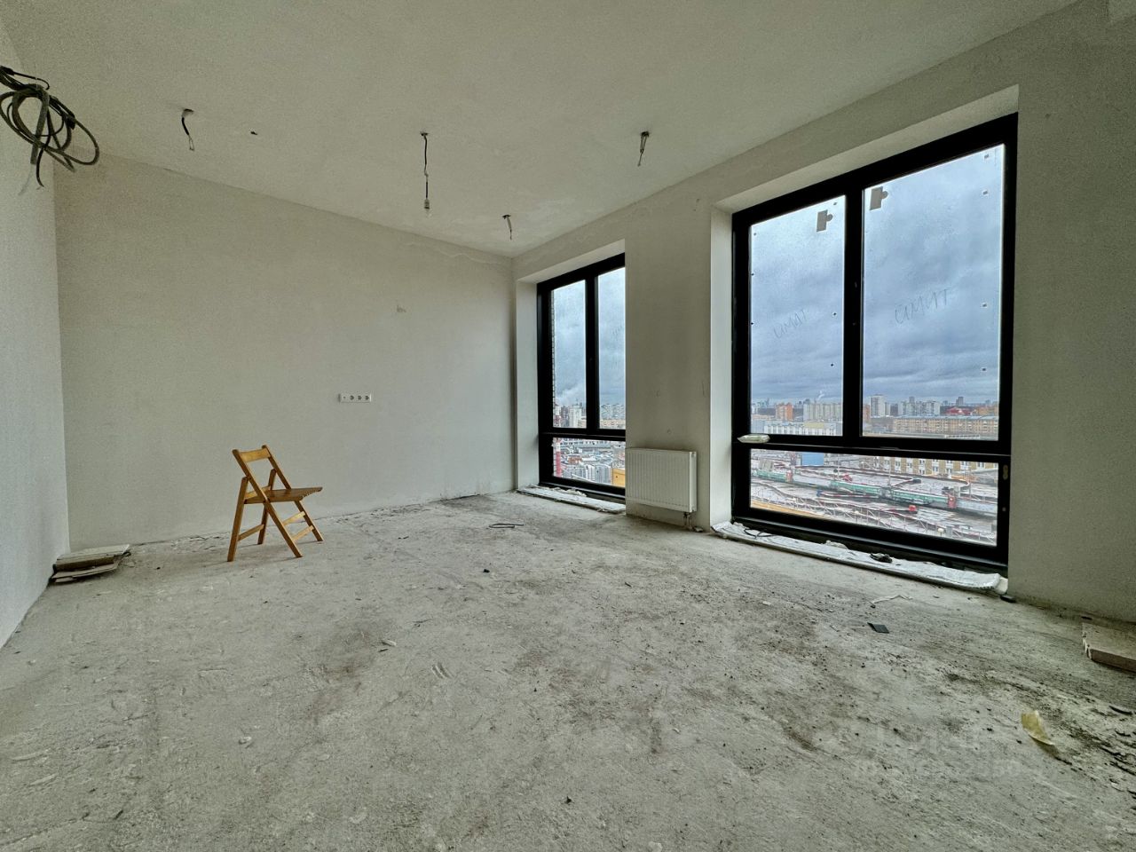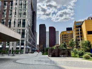 Общая площадь 74.3 кв.м., этаж 12/36, кухня-гостиная 25 кв.м., мастер-спальня 14.3 кв.м., угловая спальня 18 кв.м., высокие потолки.