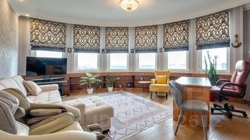 Большие площади остекления наполняют пентхаус солнечным светом.