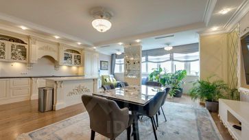 Пентхаус предлагается полностью готовым к проживанию. Выполнен эксклюзивный дизайнерский ремонт по проекту известного автора с применением исключительно дорогостоящих натуральных материалов. Пентхаус полностью меблирован и оборудован всей необходимой для комфортного проживания инженерией и бытовой техникой. Многие элементы декора и мебели изготовлены на заказ в Италии.