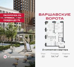 Продаётся 2-комнатная квартира 54.7 кв.м. в МФК "Варшавские ворота" на 22-м этаже 30 этажного дома. МФК "Варшавские ворота" — это точка баланса между природой и городом, стилем и функциональностью, жизнью сегодня и устойчивым будущим.