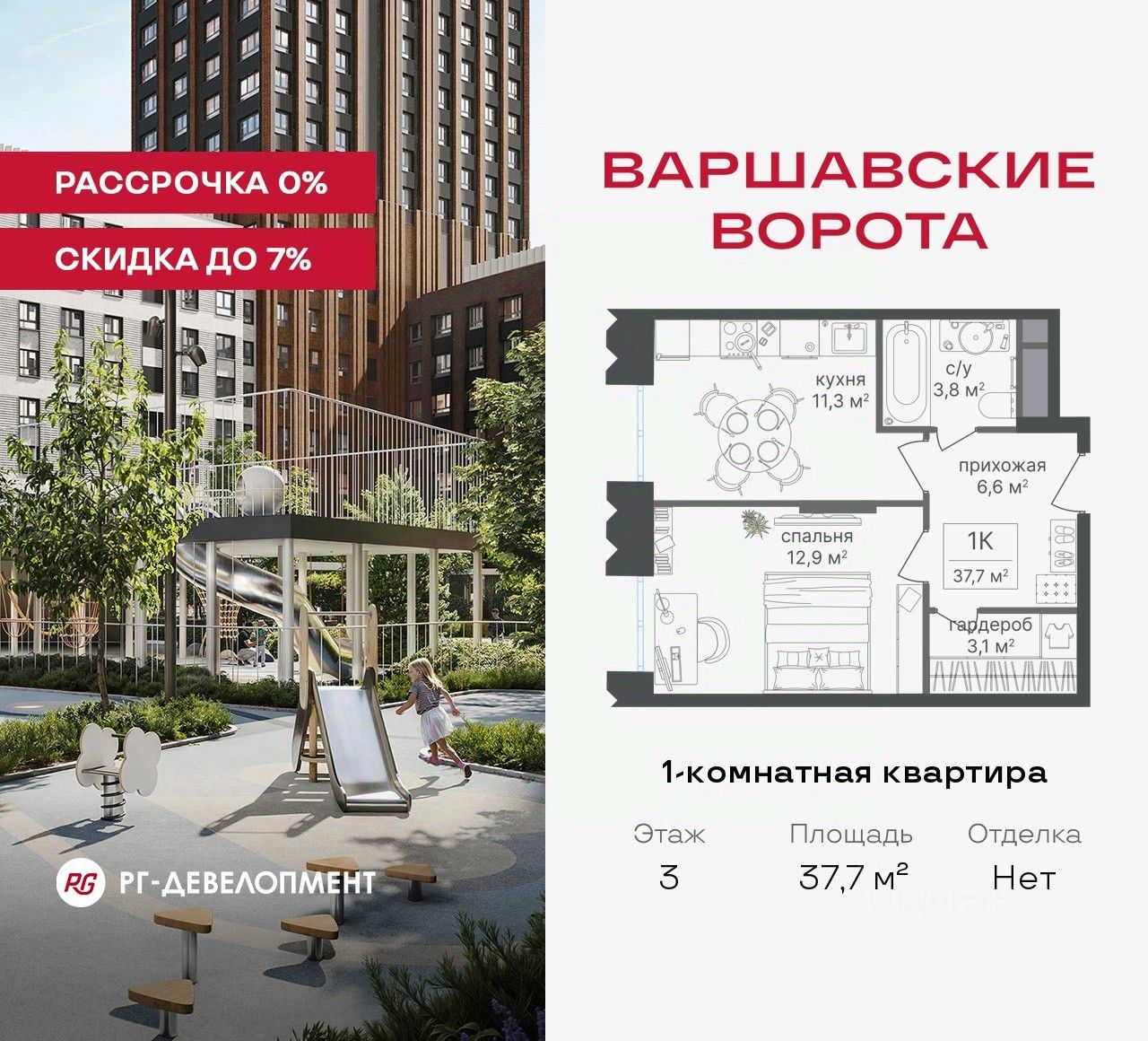 Продаётся 1-комнатная квартира 37,7 кв.м. в МФК "Варшавские ворота" на 3-м этаже 30 этажного дома. МФК "Варшавские ворота" — это точка баланса между природой и городом, стилем и функциональностью, жизнью сегодня и устойчивым будущим.