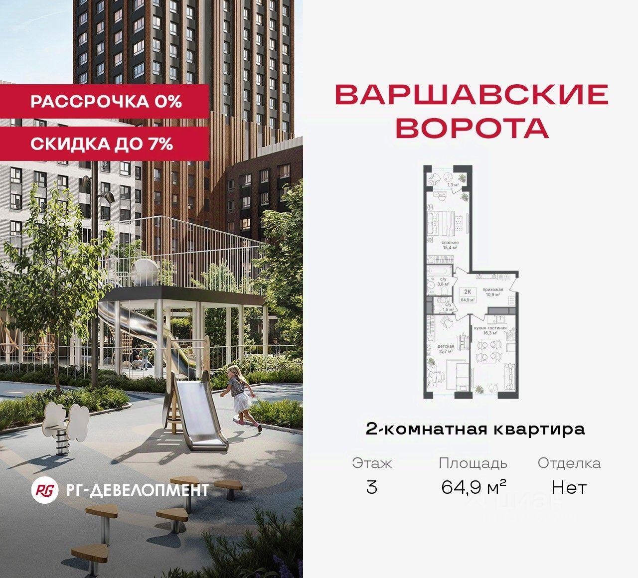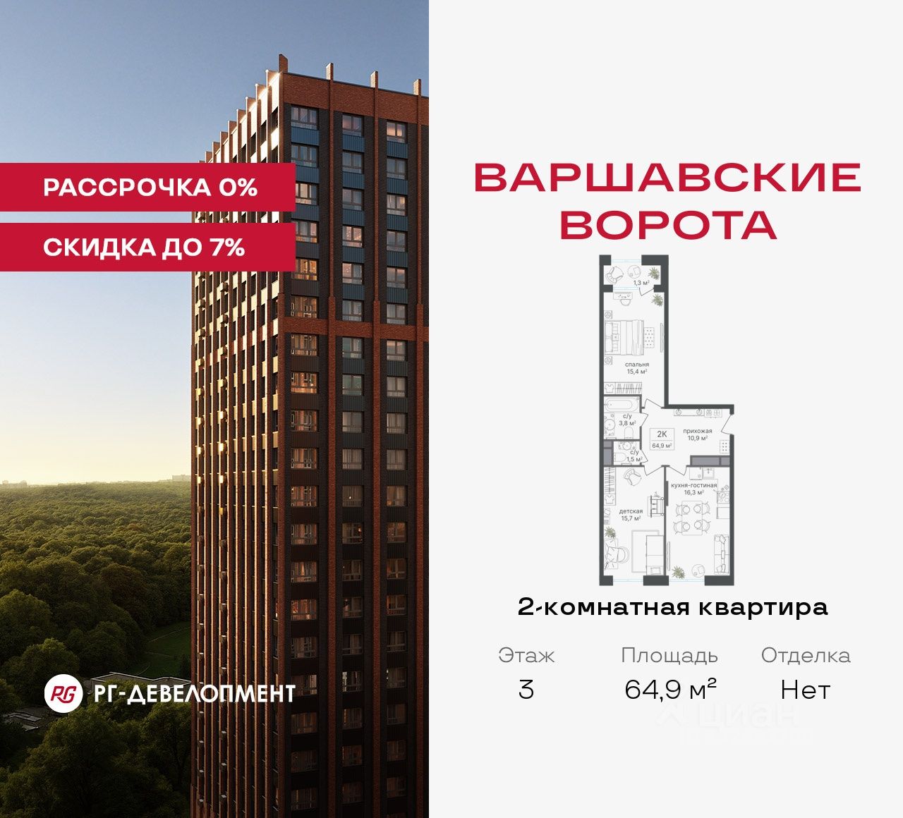 Продаётся 2-комнатная квартира 64,9 кв.м. в МФК "Варшавские ворота" на 3-м этаже 7 этажного дома. МФК "Варшавские ворота" — это точка баланса между природой и городом, стилем и функциональностью, жизнью сегодня и устойчивым будущим.