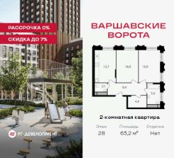 Продаётся 2-комнатная квартира 63,2 кв.м. в МФК "Варшавские ворота" на 28-м этаже 30 этажного дома. МФК "Варшавские ворота" — это точка баланса между природой и городом, стилем и функциональностью, жизнью сегодня и устойчивым будущим.