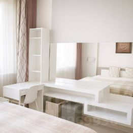 Ремонт делали исключительно для себя, всё продумано до мелочей для комфортного проживания семьи: центральная система климата (кондиционирования), приточно-вытяжная вентиляция; оконные рамы из натуральной лиственницы; пол натуральный дуб массив (не инженерная доска); двери производства Италия, натуральное дерево; теплые полы в санузлах, на кухне и на балконе; балкон сделан отапливаемым с витражным остеклением в пол (дополнительная зона отдыха); две встроенных гардеробных, кухня Aran производства Италия, техника Neff; система фильтрации воды, измельчитель пищевых отходов; мобильная перегородка между кухней и гостиной; встроенная аудио система Dolby.