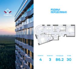 Продаётся 3-комнатная квартира площадью 86.2 м² на 30 этаже в Жилом Комплексе "Родина Переделкино".