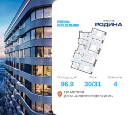 Продаётся 4-комнатная квартира площадью 96.9 м² на 30 этаже в Жилом Комплексе "Родина Переделкино".