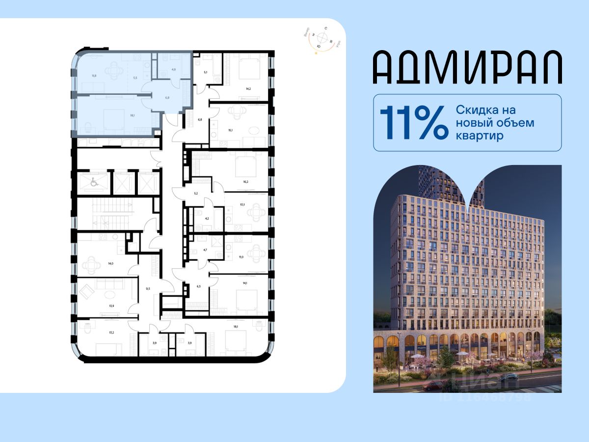 Квартира находится в корпусе жилого комплекса бизнес-класса "Адмирал", расположенного по адресу г. Москва, ул. Шоссейная, 4Д. (Застройщик - "Галс Девелопмент").