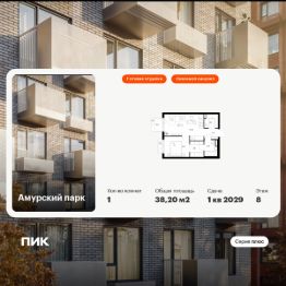 Продаётся 1-комн. квартира площадью 38,2 кв.м на 8 этаже 19 этажного дома (Корпус 4.4, Секция 4) проекта ПИК Амурский парк. Светлый просторный подъезд на уровне земли, функциональная планировка, большие окна, c отделкой.