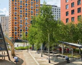 Все корпуса в квартале гармонично сочетаются, образуя единую городскую среду. Между собой их объединяет невысокая этажность и натуральная цветовая гамма. Здесь приятно гулять и проводить время на улице всей семьёй.
