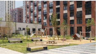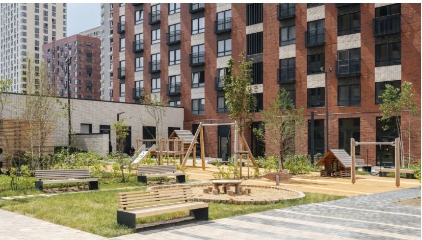 В проекте 18 домов с подземным паркингом и кладовыми, два детских сада и школа. Между домами появятся уютные дворы-парки без машин: с зелеными газонами, кустарниками и деревьями. В безопасных подьездах можно будет оставить велосипед или коляску. На первых этажах откроются кафе, магазины, пекарни и другие сервисы - за кофе и завтраком можно будет просто спуститься на лифте.