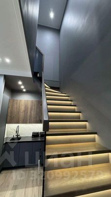 Лестница, ведущая на второй этаж, подсвечивается от движения.
