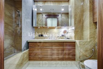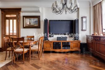 Встроенная кухня оснащена всей необходимой техникой премиум-класса от ведущих европейских производителей, включая вытяжку, посудомоечную машину, холодильник, духовой шкаф, микроволновую печь и индукционную варочную панель. А также в квартире есть вся необходимая мебель и техника для комфортного проживания. Особое внимание стоит уделить эксклюзивной мебели и стеновым панелям, выполненным из ореха по заказу известных французских брендов.