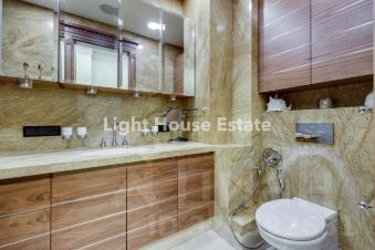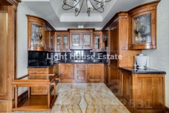 Для отделки использованы натуральные камни: оникс, мрамор и гранит, а также венецианская штукатурка на стенах, что создает атмосферу роскоши и благородства. Просторная кухня станет идеальным местом для семейных завтраков и уютных ужинов с друзьями. Два санузла обеспечивают удобство для большой семьи или гостей, добавляя комфорта и функциональности.