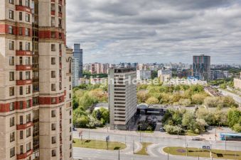 Продуманная планировка квартиры делает ее особенно привлекательной: две гардеробные комнаты, роскошный зал, совмещенный с кухней, а также 2 спальни и кабинет площадью 13,5 м² с панорамным остеклением, откуда открывается захватывающий вид на панораму Москвы.