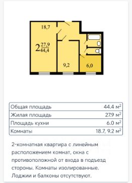 Продается уютная двухкомнатная квартира в Москве, расположенная на Яхромской улице в пешей доступности от метро Яхромская. Общая площадь квартиры составляет 44 квадратных метра, жилая площадь — 27 квадратных метров, а площадь кухни — 6 квадратных метров. Квартира находится на 6 этаже 9-этажного панельного дома, построенного в 1969 году. Высота потолков — 2,64 метра, окна выходят на улицу.