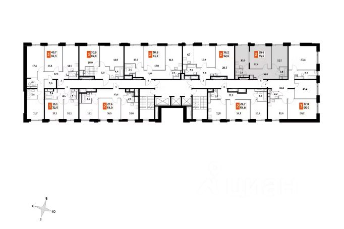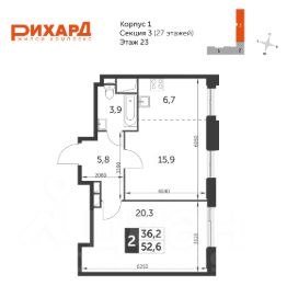 Продаётся двухкомнатная квартира в сданном доме (Корпус 1), корпус сдан, общей площадью 52.6 кв.м., на 23 этаже.