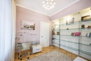 Комнаты: студия (кухня + гостиная), спальня, кабинет. Санузел совмещённый (ванна, душевая, постирочная). Спальня с гардеробной. Дизайнерский ремонт, мебель Италия. Кондиционеры в двух комнатах. На кухне встроенная бытовая техника: посудомоечная, вытяжка, холодильник и пр. Вся техника и мебель в рабочем состоянии, все элементы интерьера выбирались с большим вкусом и сохранились в отличном состоянии. Окна гостиной, кухни и кабинета на Земляной Вал, спальня на В. Сыромятническую ул.