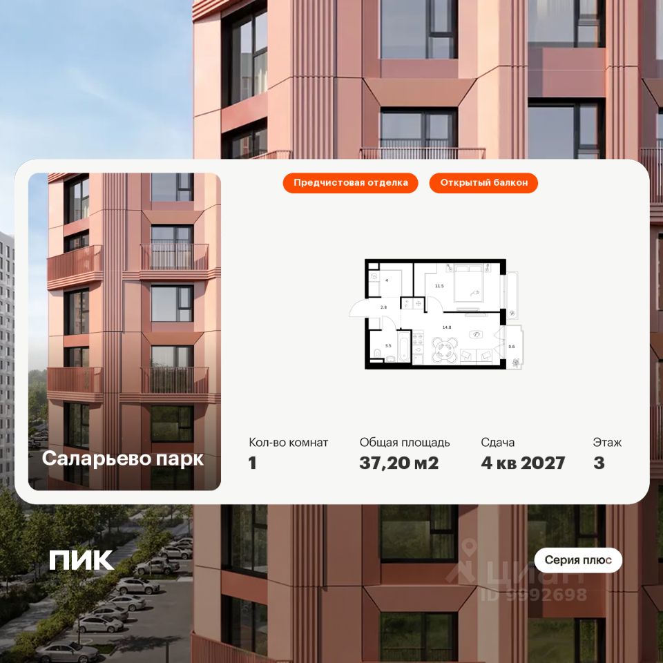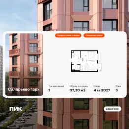 Продаётся 1-комн. квартира площадью 37,2 кв.м на 3 этаже 16 этажного дома (Корпус 57.4, Секция 4) проекта ПИК Саларьево парк. Светлый просторный подъезд на уровне земли, функциональная планировка, большие окна, предчистовая отделка.