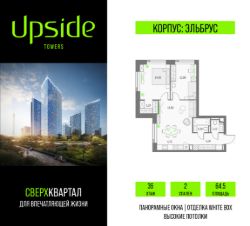 Upside Towers - технологичный квартал строится в динамично развивающемся Бутырском районе, в 3 мин. от метро, в 5 мин. от ТТК. На территории 7 га возводится 5 высотных башен от 19 до 58 этажей, названных в честь главных вершин земли. Квартиры с панорамными окнами в пол, высокими потолками и современными инженерными решениями. Благоустроенная зеленая территория включает: приватные дворы, природный комплекс, прогулочный бульвар, ландшафтный парк 2,5 га с сенсорным садом и многофункциональными игровыми и спортивными площадками.
