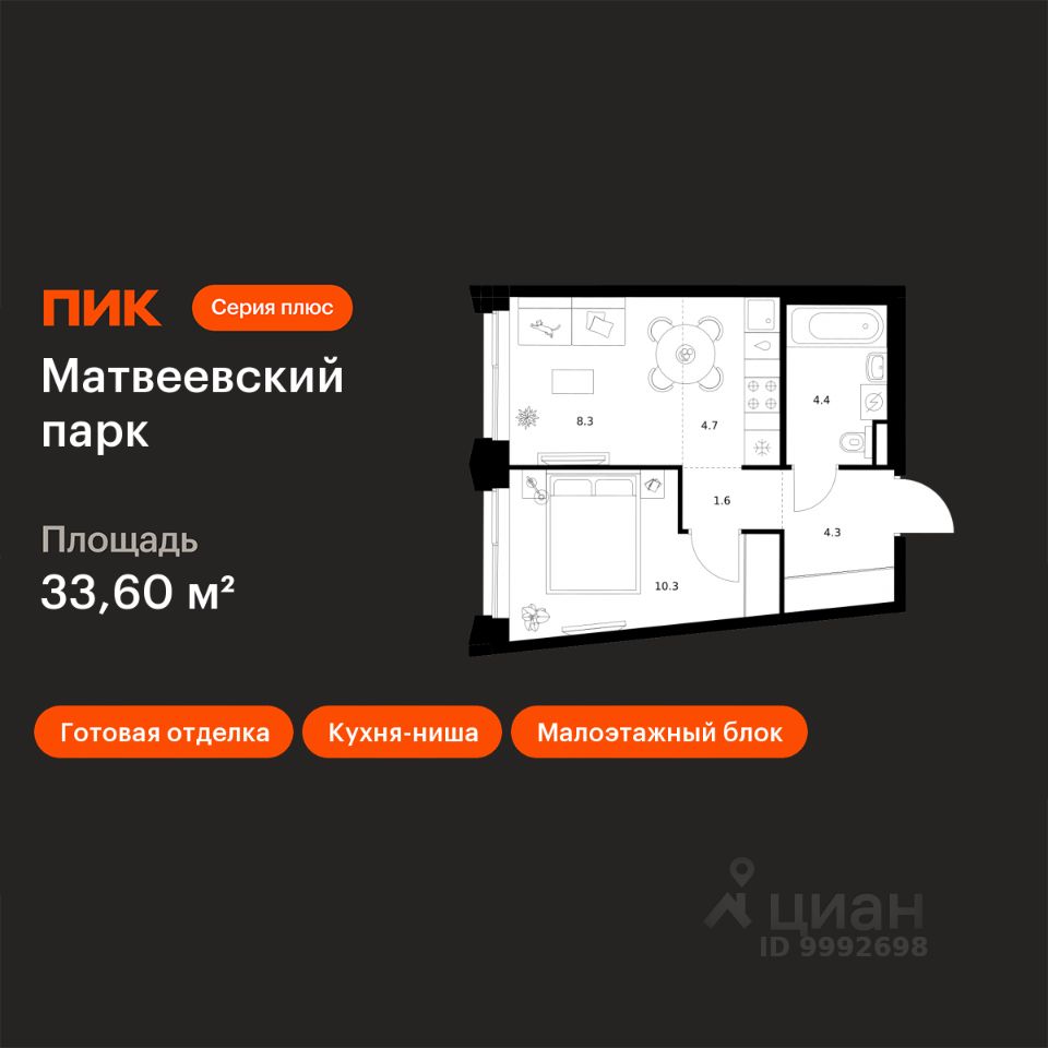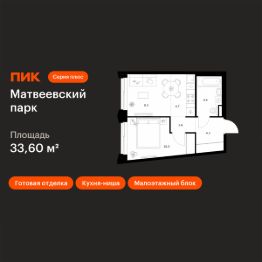 Продаётся 1-комн. квартира площадью 33,6 кв.м на 2 этаже 26 этажного дома (Корпус 4.1, Секция 1) проекта ПИК Матвеевский парк. Светлый просторный подъезд на уровне земли, функциональная планировка, большие окна, c отделкой.
