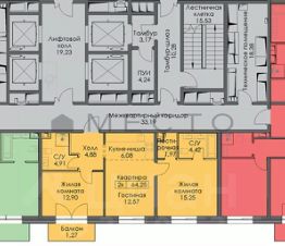 На Пресненском валу, в премиальном жк "Republic" башни Reds, продается функциональная евро3х комнатная квартира общей площадью 64,3 м2.Окна квартиры расположены на Север и Восток, что с высотой потолков 3,2 м делает ее очень светлой и наполненной воздухом. Квартира располагается на 23 этаже 26 этажного корпуса, что обеспечивает красивую панораму на двор и город в сторону "Белой площади"Планировка квартиры удобная и функциональная. В базовом варианте - одна спальня 12,9 м2 имеет выход на балкон, вторая мастер - спальня 15,3 м2 со своим санузлом и постирочной. На входе большой гостевой санузел. Кухня-гостиная 18,65 м2 позволит разместить зону готовки и зону столовой.Вариантов адаптировать под себя планировку квартиры, с учетом 3х мокрых точек и отсутствия отделки, масса. Можно сделать две мастер-спальни, а вместо постирочной гардеробную. Или большую евро2х комнатную квартиру. Просторное и функциональное лобби высотой до 9 метров, 4 лифта, терраса для жителей дома на крыше лобби, собственный двухэтажный фитнес-зал и event room, двухэтажный подземный паркинг, келлеры и места для электрокаров, все предусмотрено для наслаждения проживания.Ключи 4 квартал 2025 годПереуступка без материнского капитала, один собственник, ДДУ основание. Звоните! Лот:1469.