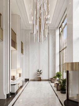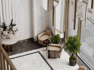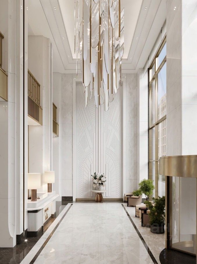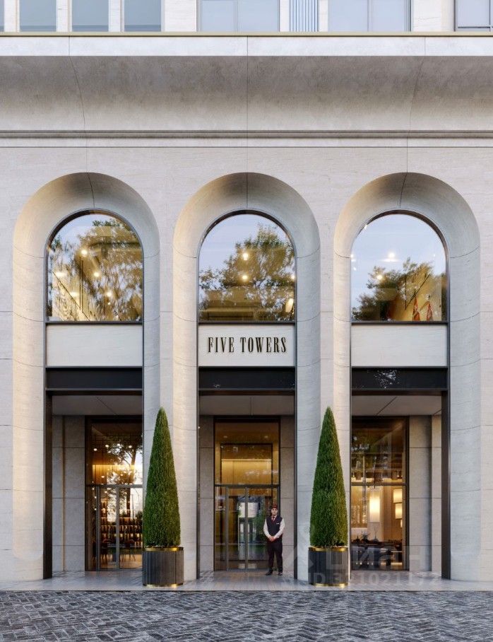 FIVE TOWERS предлагает роскошные общественные пространства, включая гранд-лобби, библиотеку, кафе и фитнес-центр. На 49 этаже находится приватный Sky Club с террасой, доступный только резидентам.