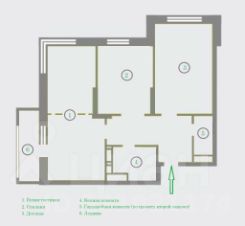 Окна просторной и светлой за счет углового окна гостиной, а также двух комнат направлены на запад.