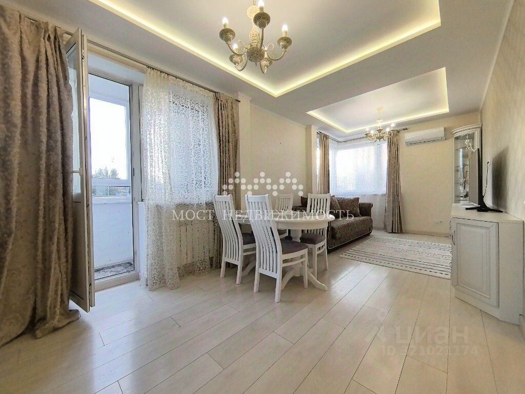 В квартире выполнен качественный функциональный ремонт с устройством разноуровневых потолков в кухне-гостиной и различными сценариями освещения.