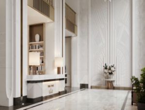 • Просторный холл с примыкающим к нему гостевым санузлом, разделяющий входную часть квартиры от основной