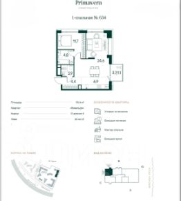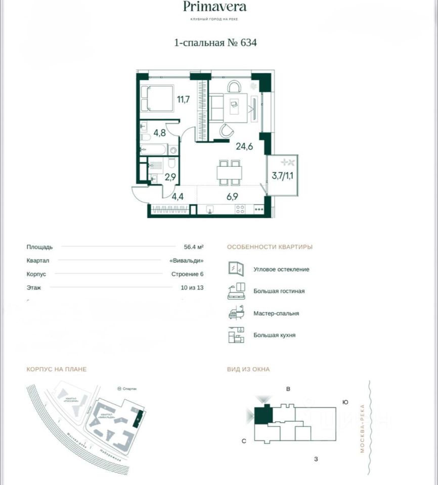 Первая линия Москва-реки, перед домом набережная протяженностью 4км и природный парк, богатая спортивная инфраструктура. В районе отсутствует старая застройка. Школы, детские сады, рестораны, кофейни уже функционируют. До метро 10-15 минут.