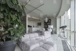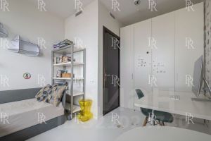 В квартире сделан премиальный, дизайнерский ремонт с использованием уникальных отделочных материалов. Кухонный гарнитур оборудован всей необходимой бытовой техникой Kuppersbusch. Установлены стиральная и сушильная машины Miele. Квартира полностью меблирована эксклюзивной дизайнерской мебелью и готова к заселению.