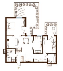 Две спальни по 14м2 с прямым выходом на индивидуальные террасы 40м2 и 10м2, где можно оформить лаунж-зоны на открытом воздухе и наслаждаться утренним кофе или уютными вечерами. Комната 11м2 легко адаптируется под ваш ритм жизни - рабочий кабинет или гостиная, решать вам.