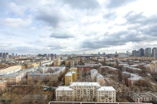 Высота потолка- 3 м. Окна расположены на две стороны света. Панорамные виды!