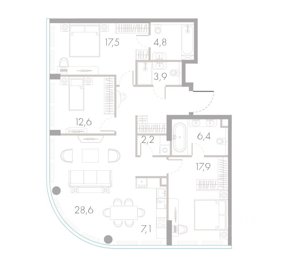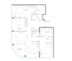 Продается 3-к квартира площадью 113 кв.м. на 36-м этаже в жилом комплексе премиум-класса River Park Кутузовский в Башне 2