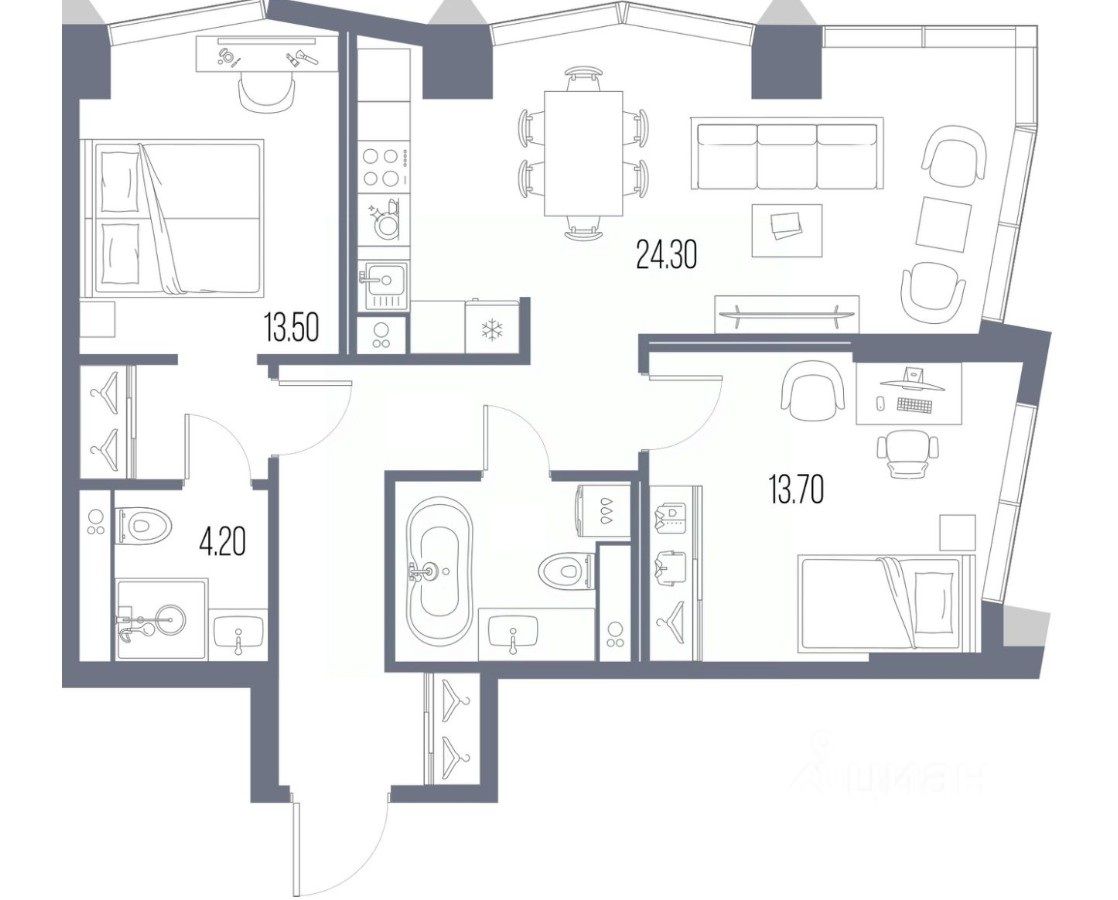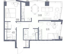 Продается 3Е квартира общей площадью 75,7 кв.м, чистовая отделка! Квартира в корпусе 7,3