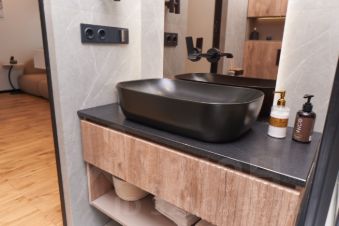 Полы: Уникальная паркетная доска, в санузле — тёплый пол.