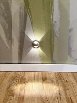 Полы - кварц-винил, стены - обои-флизелин покрашены, установлены молдинги, картина и панно.