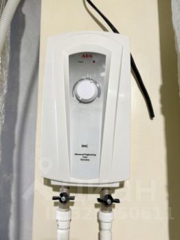 Отделка - керамогранит, встроенные полки. Электрический полотенцесушитель, проточный водонагреватель AEG (мощность 5,5 кВт).