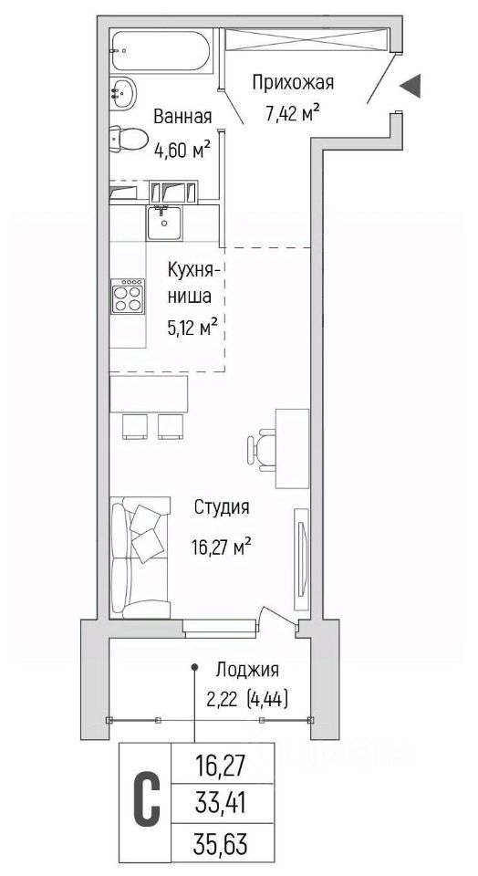 на 7 этаже из 10, секция 6, в ЖК Riga Hills площадью 35.63 кв.м. ЖК Riga Hills (Рига Хиллс) яркий жилой комплекс бизнес-класса в экологически чистом районе Подмосковья, всего в 12 км от МКАД по Новорижскому шоссе.