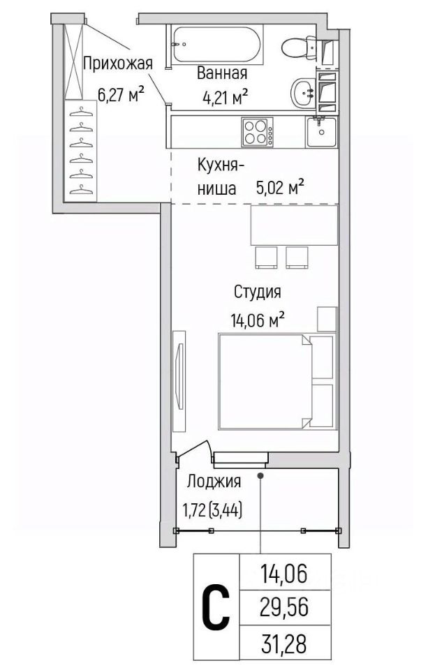 на 8 этаже из 9, секция 4, в ЖК Riga Hills площадью 31.28 кв.м. ЖК Riga Hills (Рига Хиллс) яркий жилой комплекс бизнес-класса в экологически чистом районе Подмосковья, всего в 12 км от МКАД по Новорижскому шоссе.