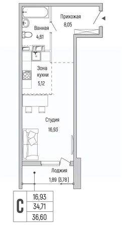 на 4 этаже из 9, секция 2, в ЖК Riga Hills площадью 36.60 кв.м. ЖК Riga Hills (Рига Хиллс)  яркий жилой комплекс бизнес-класса в экологически чистом районе Подмосковья, всего в 12 км от МКАД по Новорижскому шоссе.