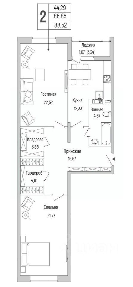 Продается 2-комнатная квартира на 4 этаже из 9, секция 12, в ЖК Riga Hills площадью 88.52 кв.м. ЖК Riga Hills (Рига Хиллс) яркий жилой комплекс бизнес-класса в экологически чистом районе Подмосковья, всего в 12 км от МКАД по Новорижскому шоссе.