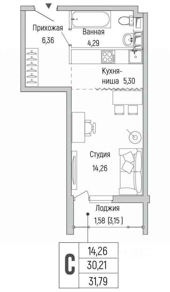 на 4 этаже из 9, секция 19, в ЖК Riga Hills площадью 31.79 кв.м. ЖК Riga Hills (Рига Хиллс) яркий жилой комплекс бизнес-класса в экологически чистом районе Подмосковья, всего в 12 км от МКАД по Новорижскому шоссе.