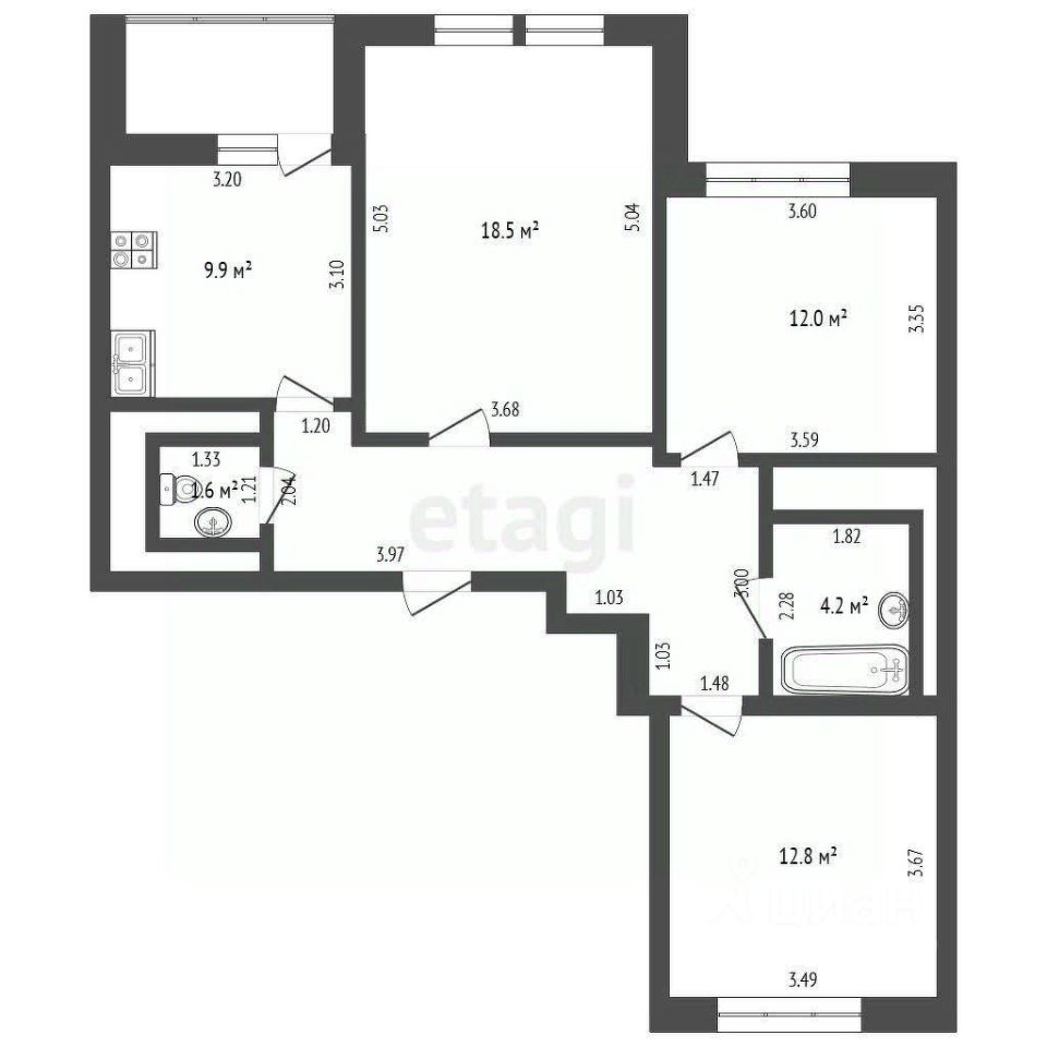 Продается 3-комн. квартира, 73,1 м²