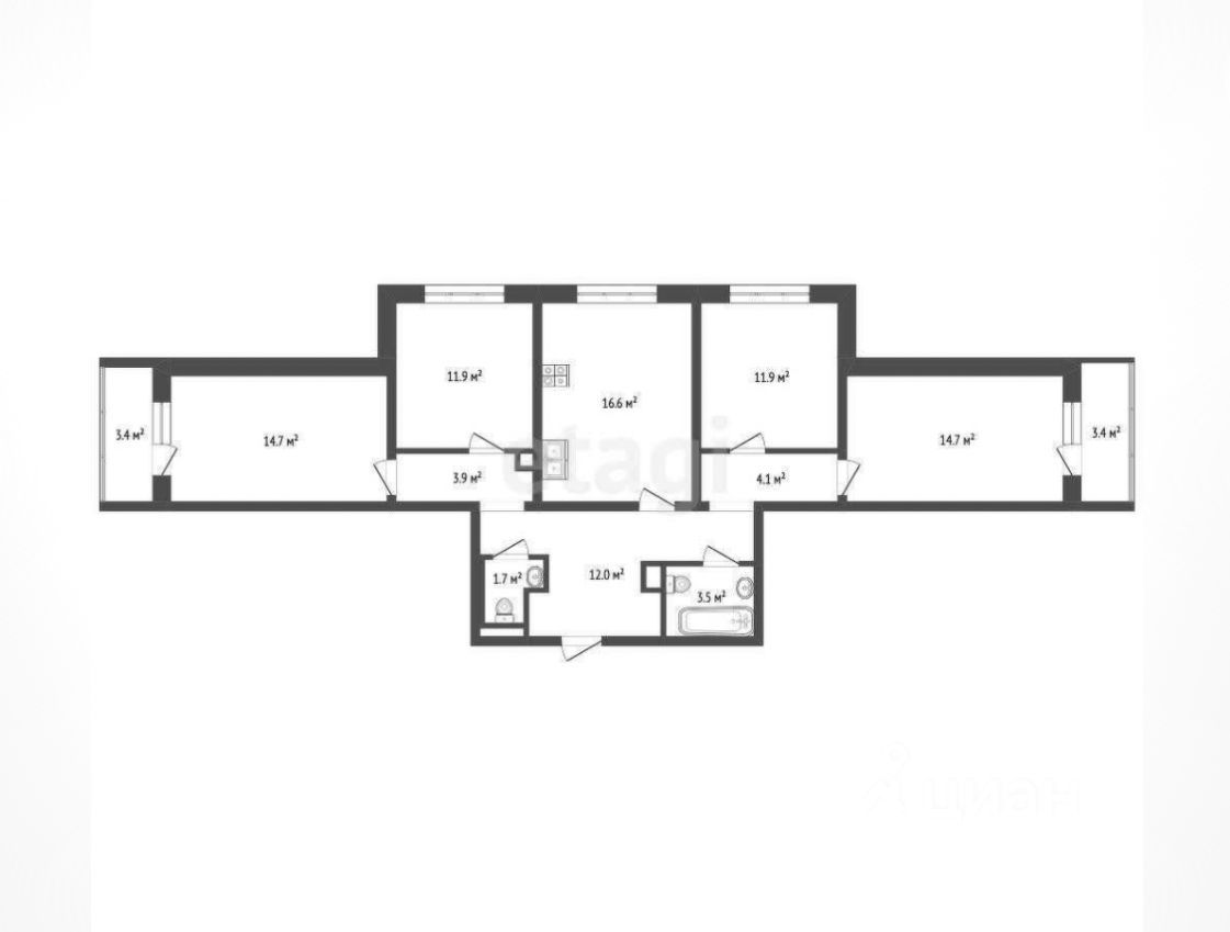 Простор и комфорт — 96,8 м², 4 изолированные комнаты + 2 лоджии. Можно создать пространство мечты!