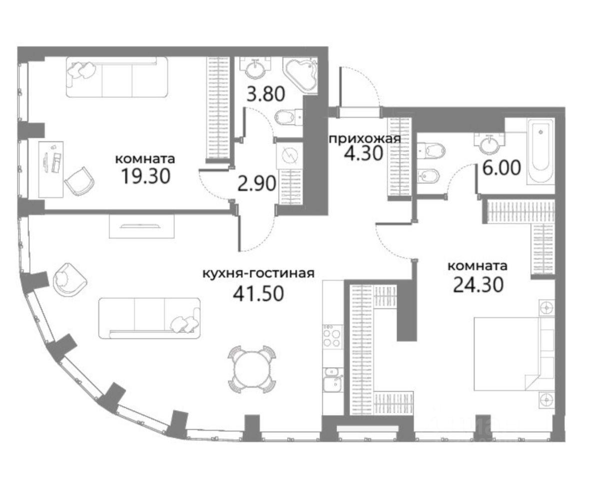 - мастер-спальня 24,30 метра со своими ванной и большой гардеробной комнатами;
